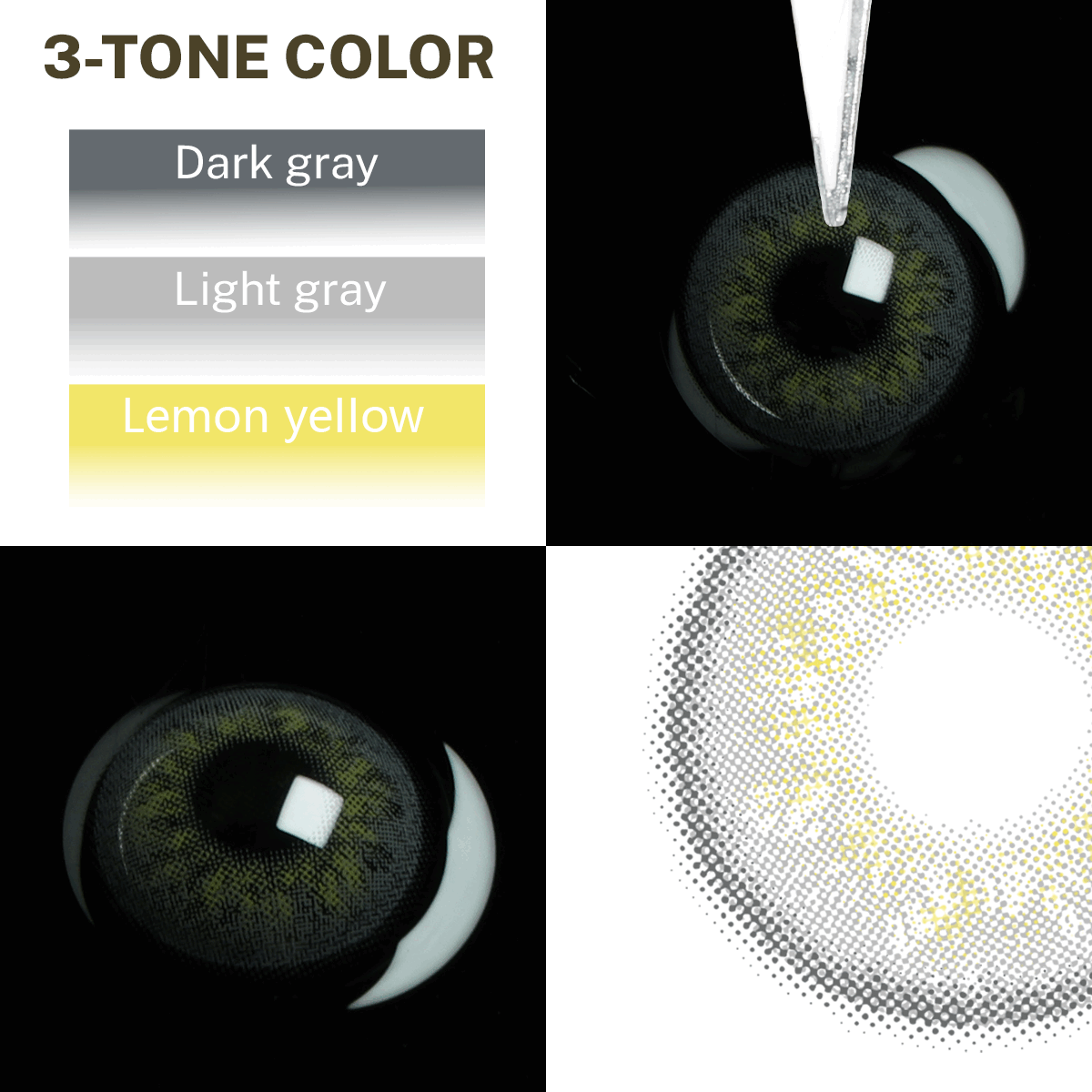 This color-embedding process divides contact lens into 3 layers, which effectively prevent the pigment layer from touching your cornea directly ensuring your eyes healthy and safe.